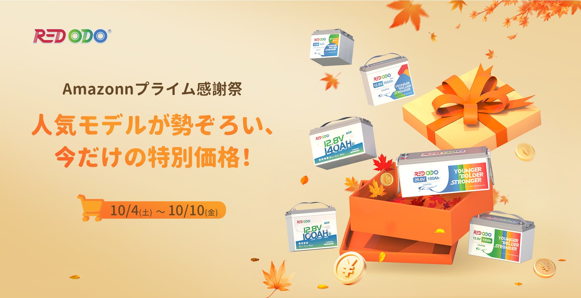 Redodo(レッドオド)は、10月4日(土)00:00から10月10日(金)23:59まで開催されるAmazonの大型セール「Amazonプライム感謝祭 先行セール/本セール」において、リン酸鉄リチウムイオンバッテリーを特別価格で販売いたします。