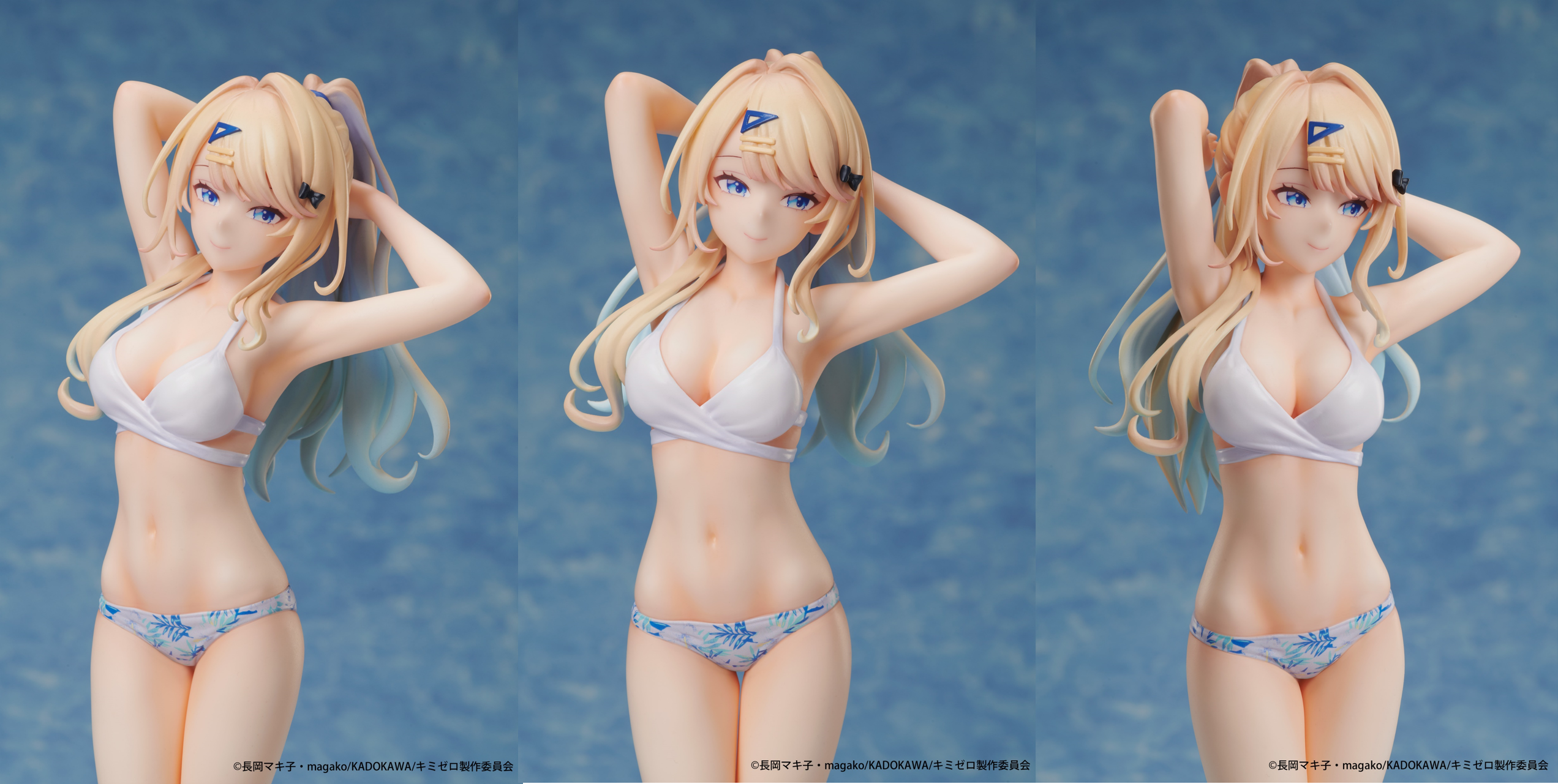 本作のヒロインの一人である「白河月愛」のきわどい水着を纏った姿がスケールフィギュアになりプライズとして展開予定です!