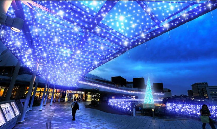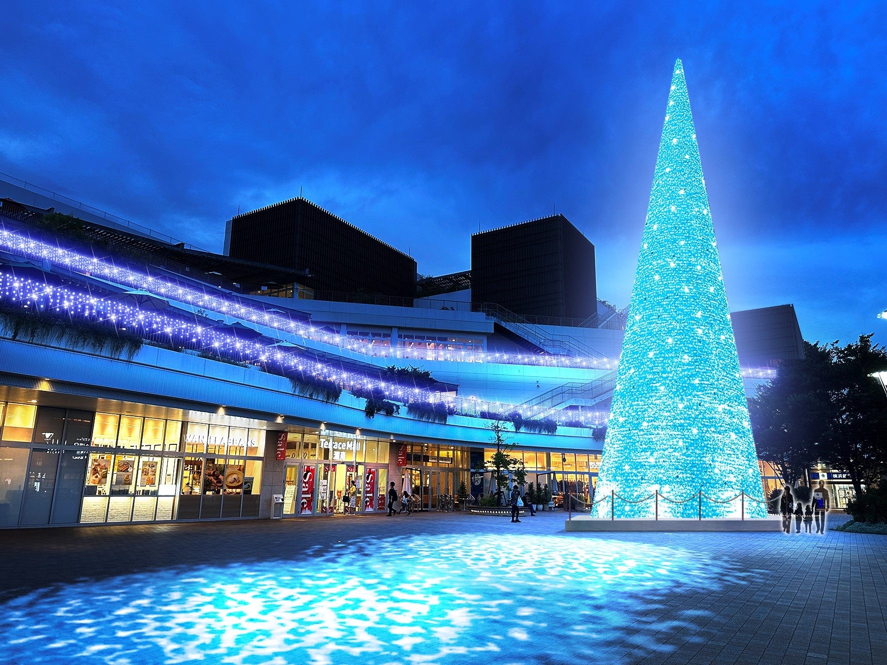 JR辻堂駅直結のテラスモール湘南が約30万球の電飾で青の世界に染まる。約20mの巨大ツリーが登場!「湘南の青い海、蒼い空~Waving Star Found you~」