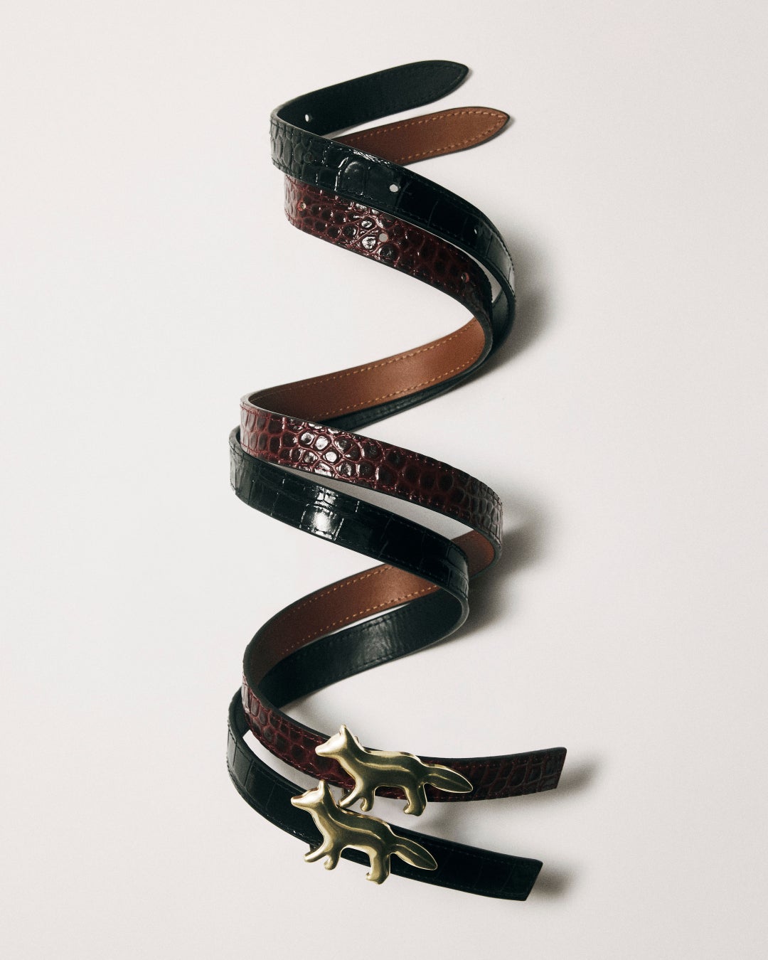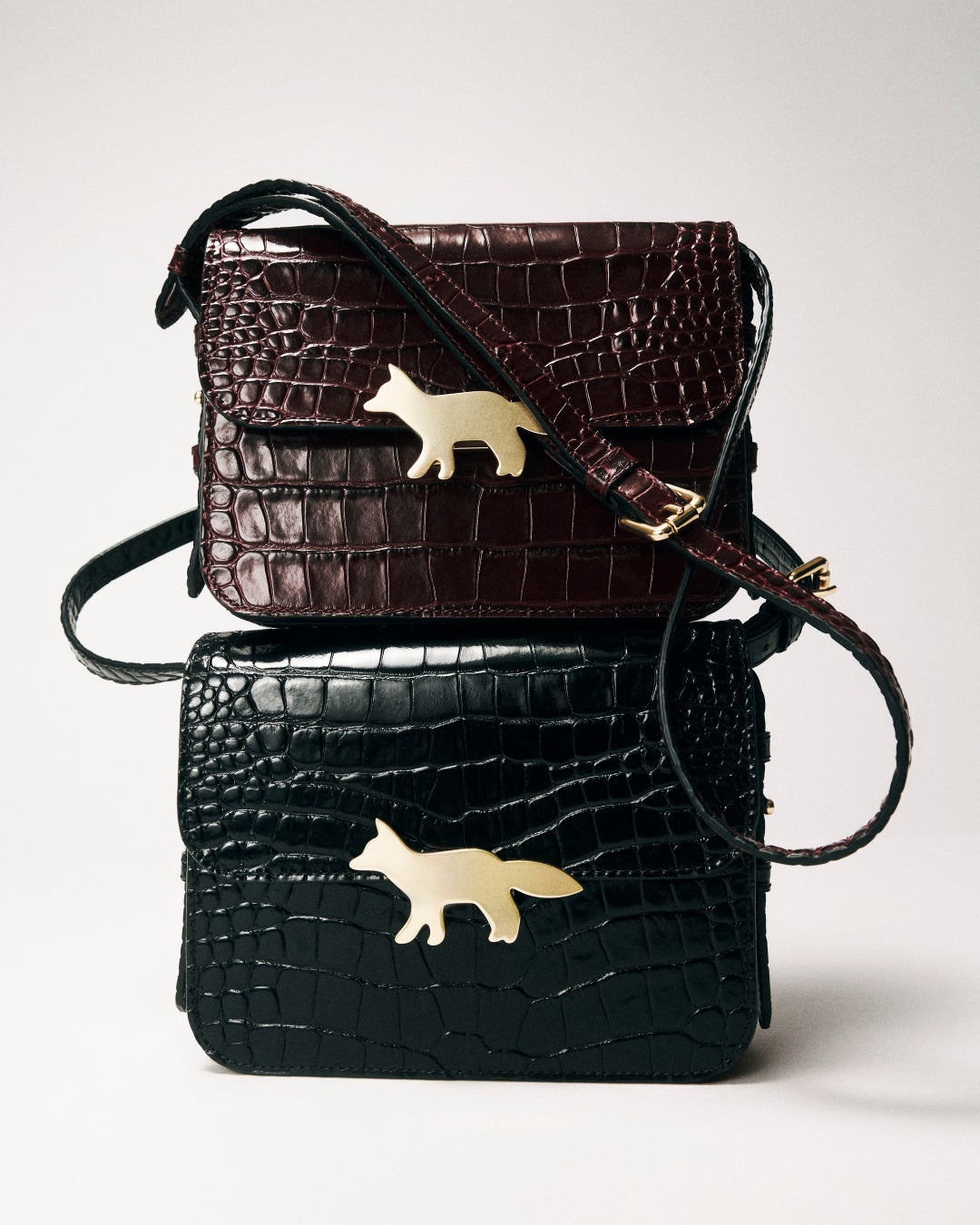 今回発売するのは、レザーにクロコの型押しを施したもの。ほどよい艶が高級感を演出する本商品は、ブラックとバーガンディの2色で展開されます。ブランドを象徴する「PROFILE FOX」の形のバックルが特徴的なアイコンバッグです。
