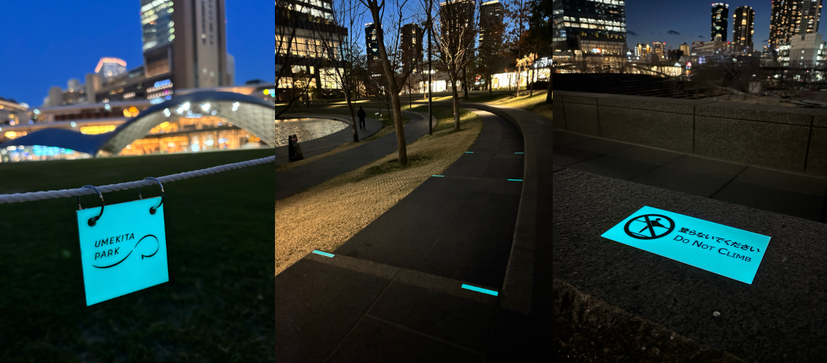 都市の真ん中で、自然と安全が共存。「非電力・蓄光サイン」がグラングリーン大阪 うめきた公園で導入