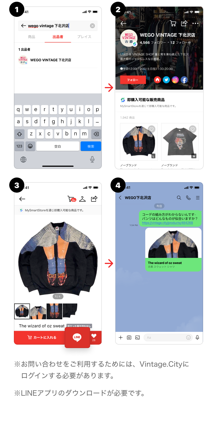 ①Vintage.Cityアプリで「WEGO VINTAGE 下北沢店」を検索