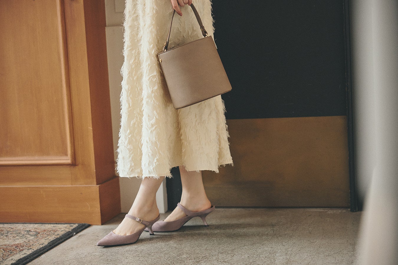 Jacket ¥24,200、Vest & Skirt set ¥31,900、Bag¥17,600、Pumps ¥18,700