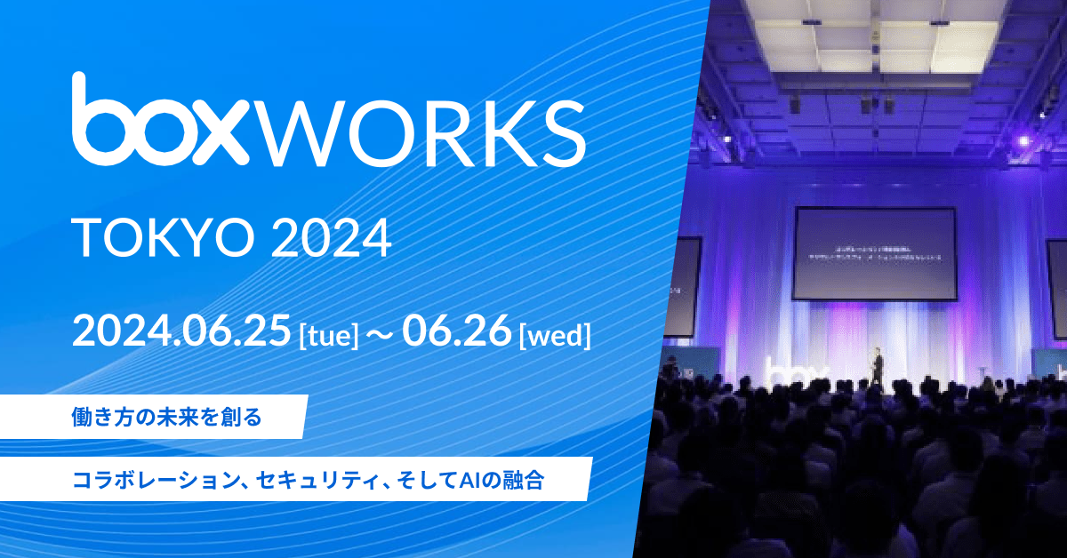 サイバーセキュリティの脅威や急激なインフレなどの経営リスクに加えて、生成AIを代表とするテクノロジーの急速な進化が並走する昨今、予測困難なVUCA時代に求められる強靭な組織をつくる柔軟なワークスタイルが求められています。今日のビジネスでは、セキュリティやガバナンスを強固に守りながらも、制約のないコラボレーションやデータ利活用を推進するための「攻めのIT戦略」が重要となっています。今年で10回目の節目を迎えるBox Japanの年次旗艦イベント「BoxWorks Tokyo 2024」では、『働き方の未来を創る ー コラボレーション、セキュリティ、そしてAIの融合 ー』をテーマに、イノベーションを牽引する各界のリーダーによる先進的な取組みから、企業・組織における具体的なBoxの活用事例や最新情報まで、さまざまな切り口でご紹介いたします。