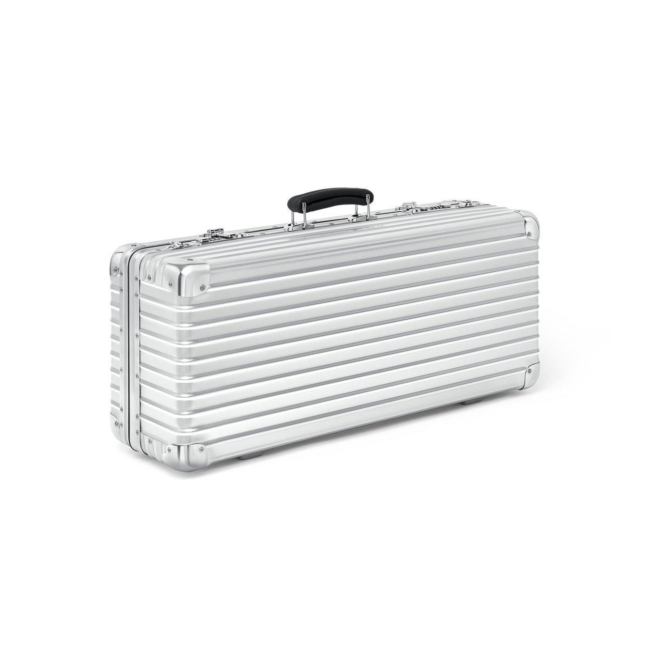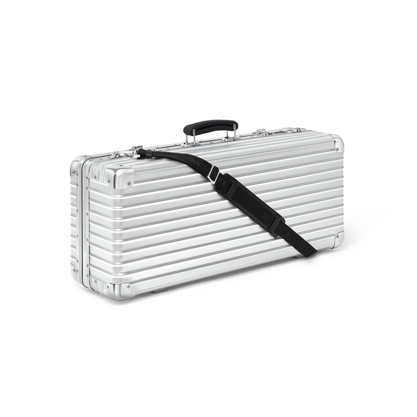 「RIMOWA x GEWA トランペットケース 」はドイツで製造されており、外装にはRIMOWAのグルーヴ入りアルミニウム素材が採用されています。卓越したクラフツマンシップと時代を超越したアイコニックなデザインとが見事に融合したこのアイテムは、RIMOWAの定番人気コレクション「クラシック」コレクションからインスピレーションを受けたもので、光沢のあるコーナーデザイン、レザーハンドル、そして持ち運びに便利なクロスボディストラップが備え付けられていることが特徴です。