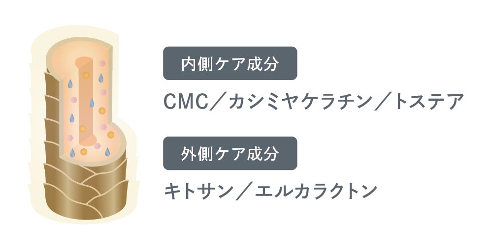 CMC :毛髪内の脂質・水分を補充し、毛髪全体に薬液を循環させる効果
