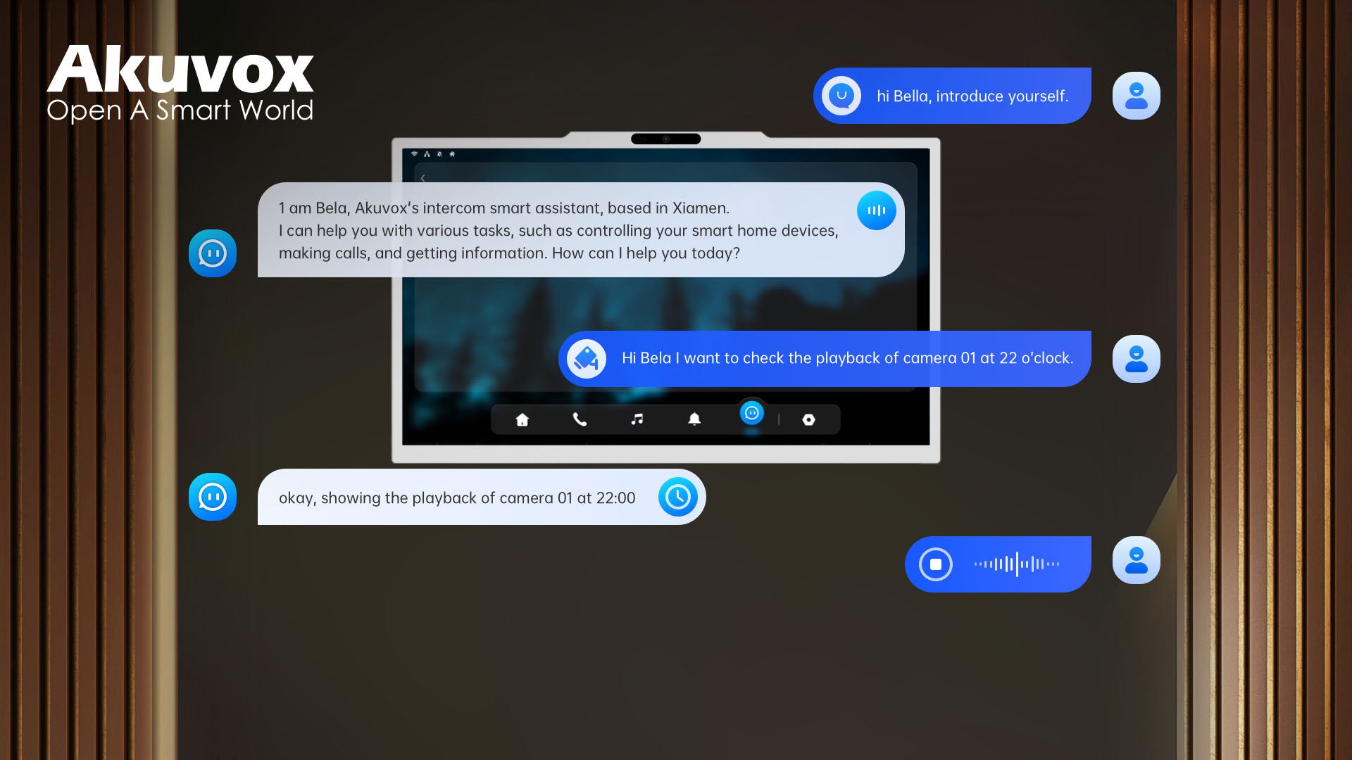 大規模言語モデル(LLM)を活用したAI音声アシスタントを搭載し、自然言語による操作が可能です。操作習得の負担を軽減し、誰でも簡単に高度なインターホン機能を利用できます。