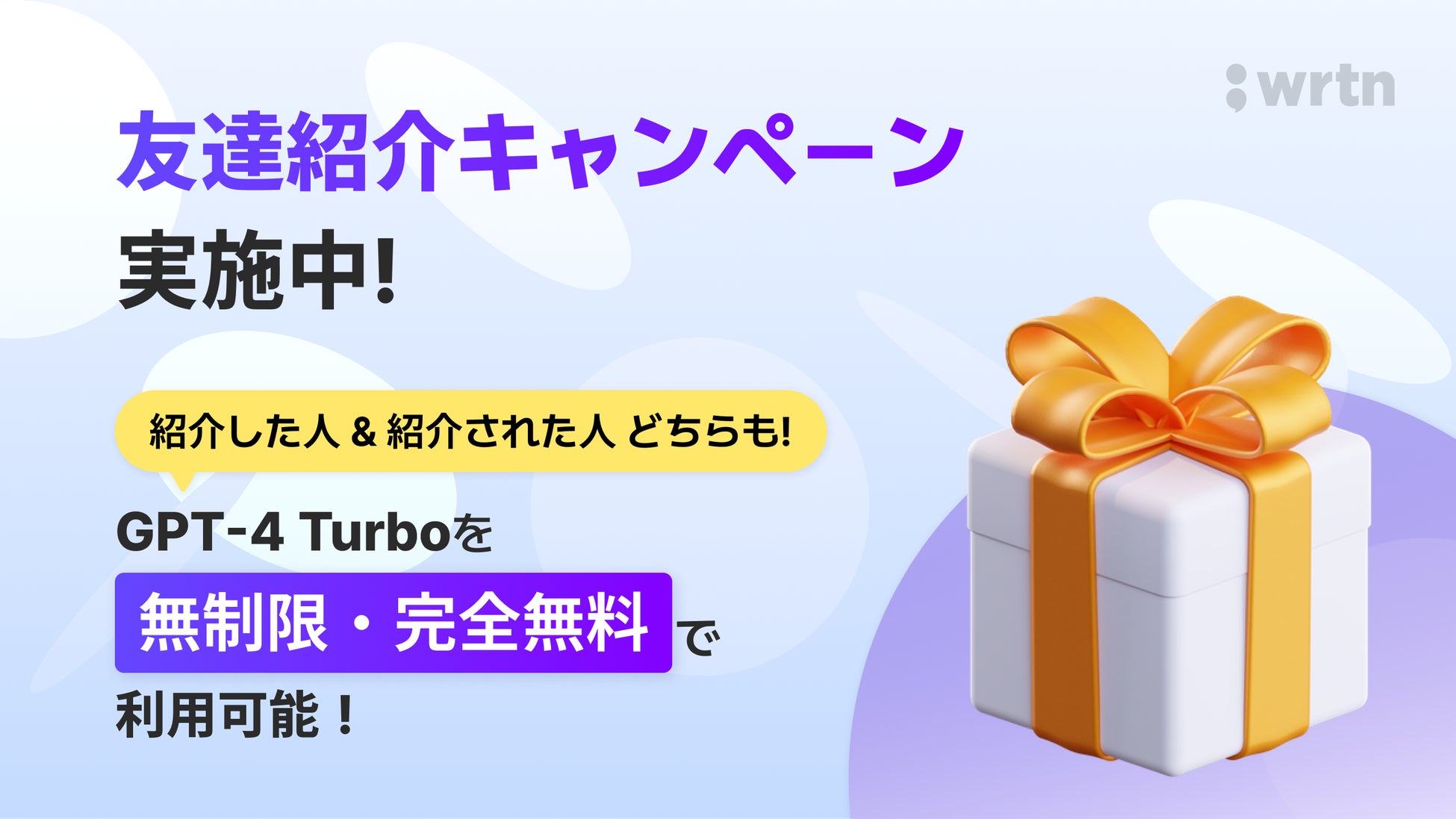 生成AIプラットフォーム企業 リートンテクノロジーズ“紹介した人” も ”された人”も GPT-4 Turboが完全無料無制限に!「wrtn(リートン)」 お友達紹介キャンペーンを開催中
