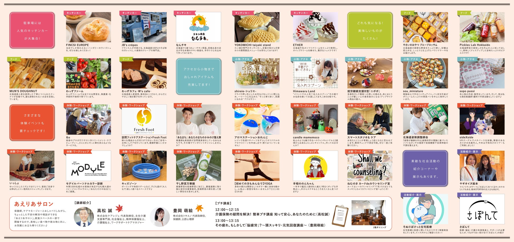 福祉や介護は、誰もが必要となるものですが、必要に迫られないと関心を持てず、いざ必要になり困る方が多くいます。「おいしい」「たのしい」「うれしい」から福祉・介護にも触れちゃう「あえりあマルシェ」を開催。