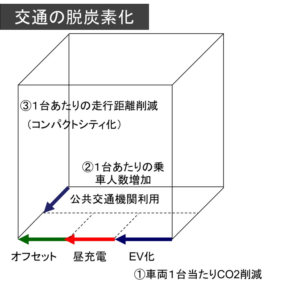 (a)マイカーの単独運転ならライドシェア等多人数で移動する、(b)バス・鉄道に乗る (c)自転車や徒歩8(d)上記を組み合わせたマルチモダル(パーク&ライドなど)で移動する