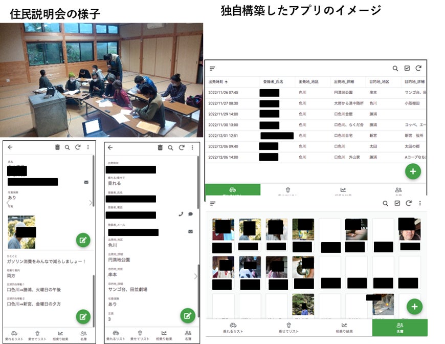 住民同士のシェアライド事業の説明会・打ち合わせを5回開催し、地区住民に呼びかけ、話し合いを重ね、地区の1割程度に参加いただいた。