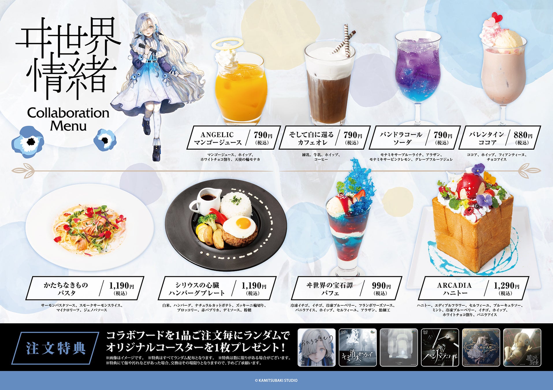 MV再生数520万回超えの「シリウスの心臓」をはじめ、ヰ世界情緒の楽曲をイメージしたメニューをご用意いたしております。