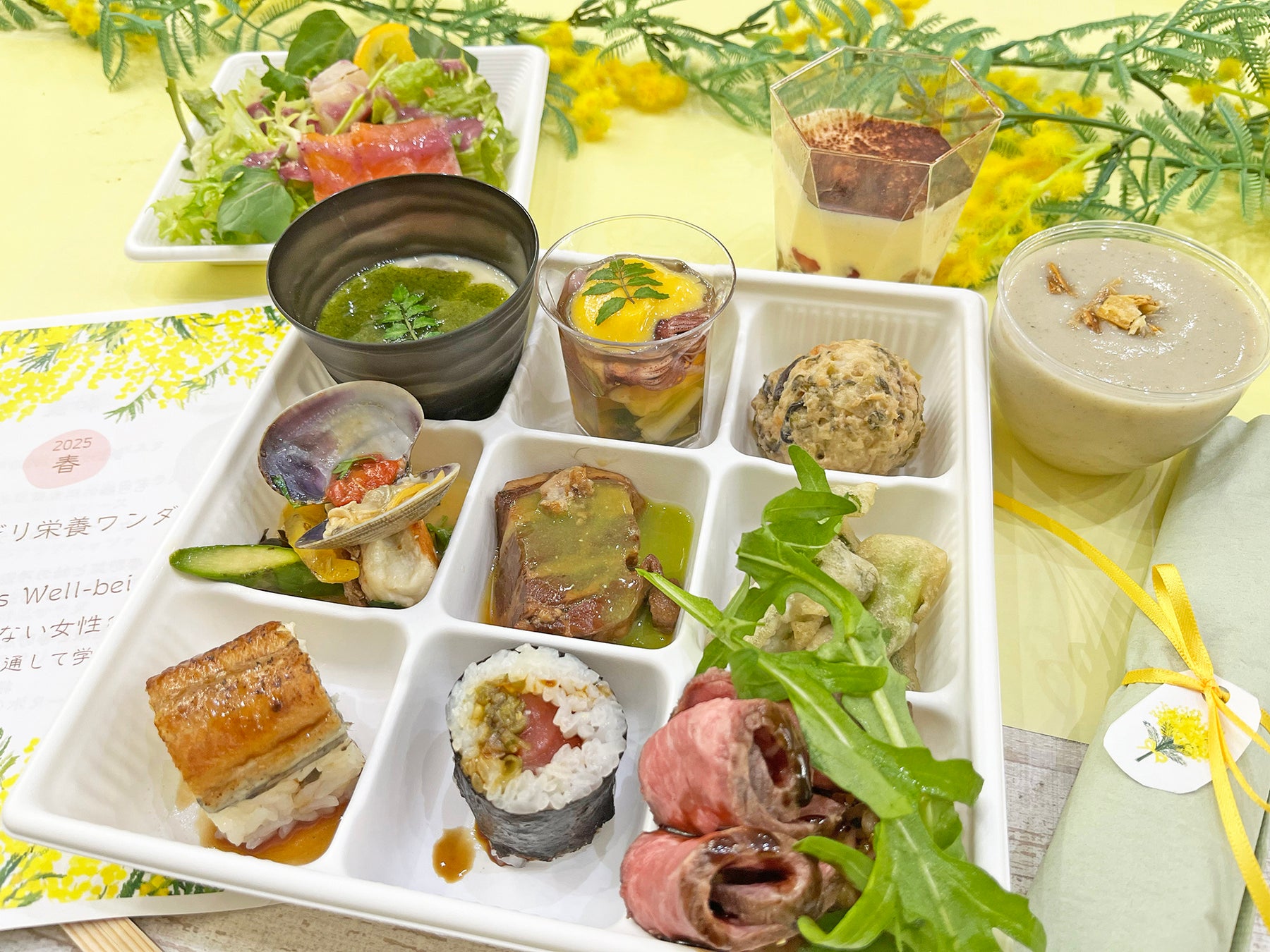 ランチビュッフェでは、はまぐりや桜鯛、ホタルイカ、セリ、菜花など、春の食材をふんだんに使用。骨粗鬆症や乳がん予防を意識したメニューとし、セミナーと連携することで、健康意識の向上を図るとともに、春の訪れを感じることができました。