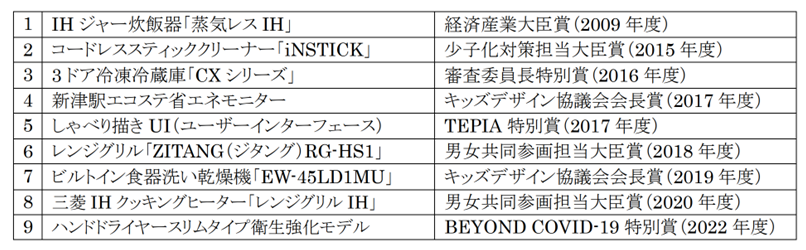 <キッズデザイン賞(優秀作品)の受賞履歴>