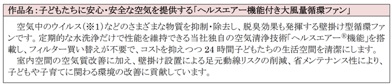 作品名:子どもたちに安心・安全な空気を提供する「ヘルスエアー機能付き大風量循環ファン」