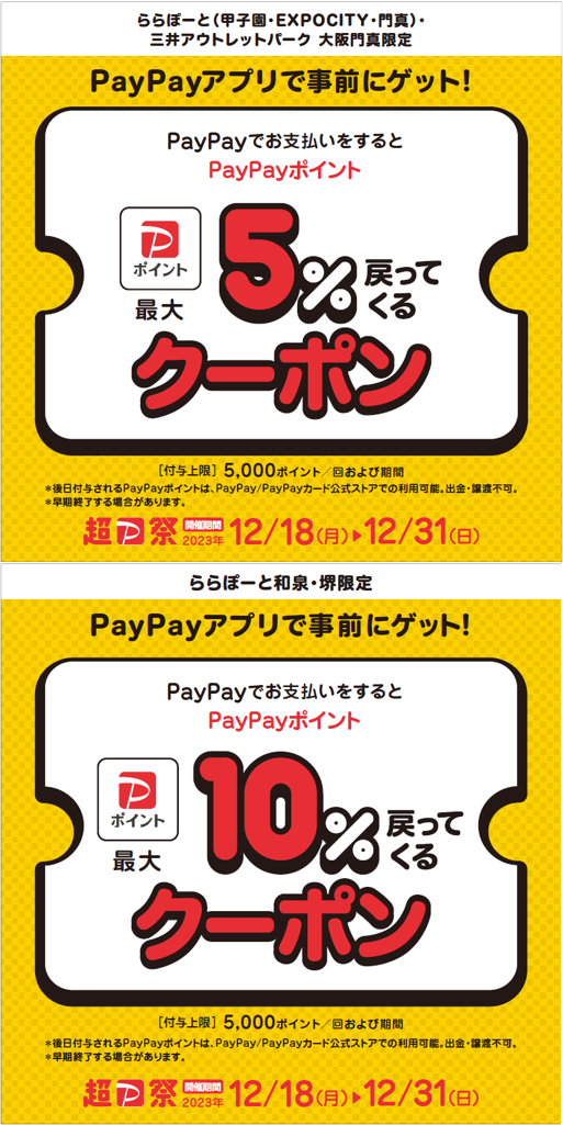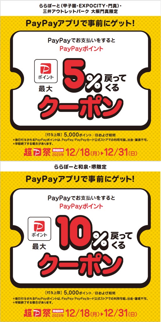2023年12月18日(月)~12月31日(日)の期間、事前にPayPay内でクーポンを取得いただき、対象店舗にてPayPayをご利用のうえ
