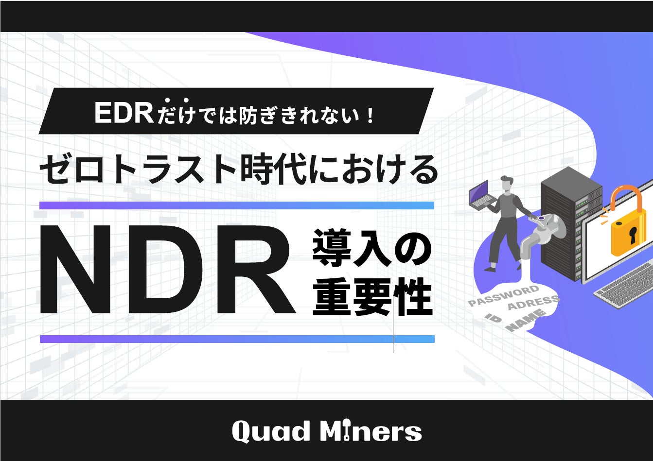 株式会社クワッドマイナージャパン(本社:東京都千代田区、代表取締役社長:蘇 明燮、以下当社)は、近年大注目されているセキュリティ戦略である「ゼロトラストモデル」を実現するために不可欠なNDRの重要性を詳述したホワイトペーパー『EDRだけでは防ぎきれない!ゼロトラスト時代におけるNDR導入の重要性』を公開しました。