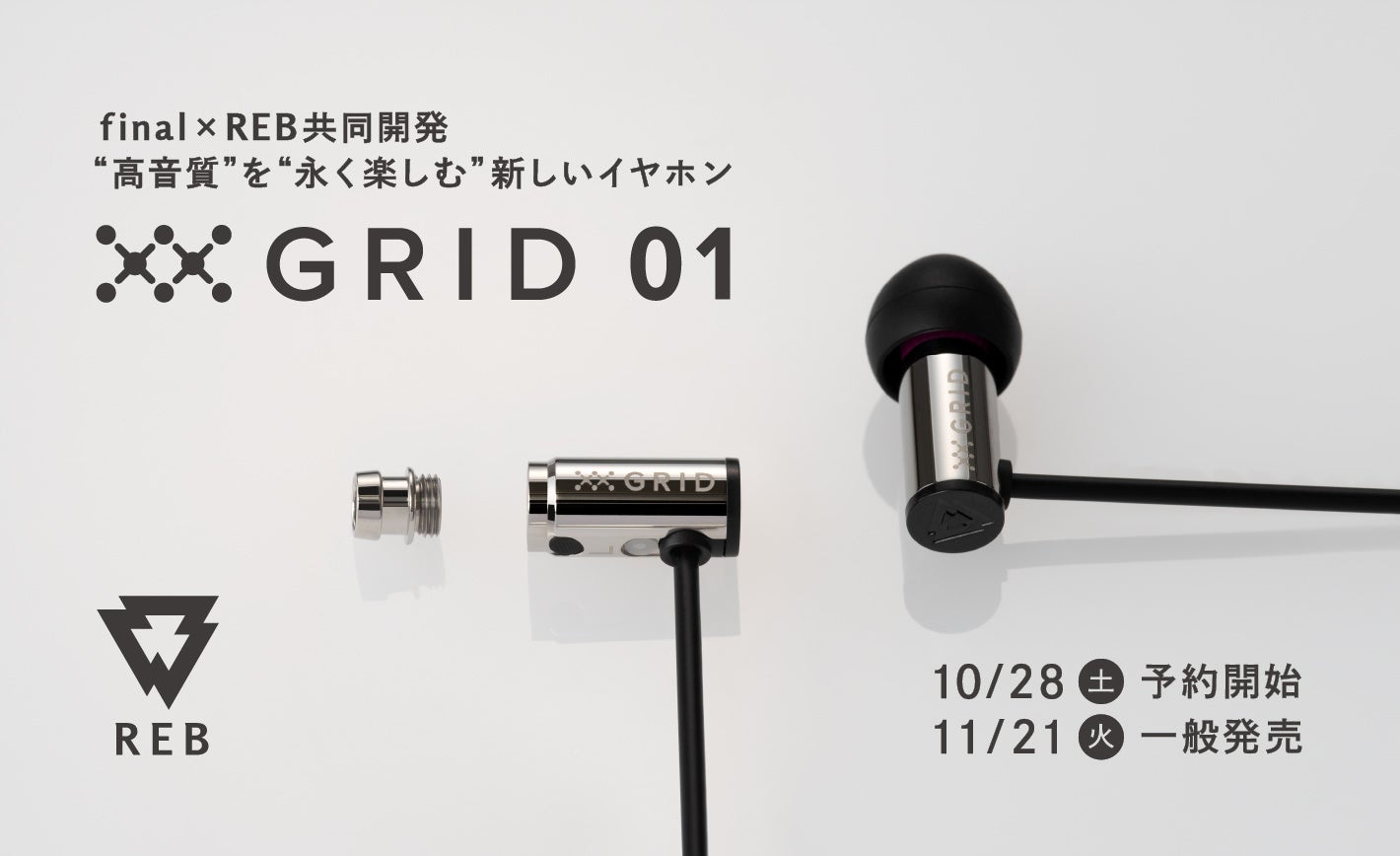 REB初製品「GRID01」が満を持して一般発売開始! final開発チーム×REBの共同開発 高音質&永く楽しめる有線イヤホン