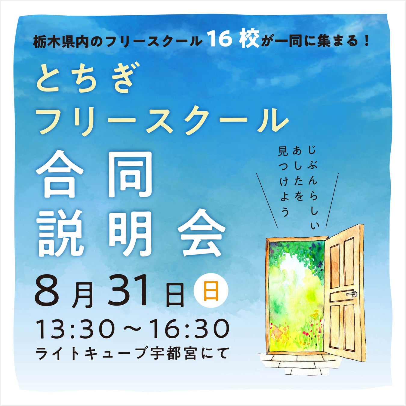2025年8月31日(日)、栃木県宇都宮市にて「とちぎフリースクール合同説明会」を開催。県内フリースクール16団体が出展し、自由に見学・個別相談が可能。茨城サドベリースクール代表田中氏による講演会も。