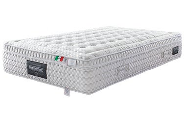 イタリア・マニフレックス社のブランド創立 60周年を記念して発売された特別モデルであり、同社の長きにわたるマットレス製造技術の粋を結集したブランド史上最高位のマットレスです。独自開発の高反発フォーム<エリオセル®>、<エリオセル MF(マインドフォーム)®>を中心とした芯材と、シルクやカシミヤなどの高級天然繊維を用いた側地からなる贅沢な12層構造が、総厚35cmの圧倒的なボリュームと、他モデルでは味わえないラグジュアリーな寝心地を実現しています。