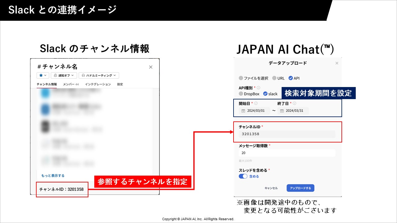 JAPAN AI株式会社(本社:東京都新宿区、代表取締役社長:工藤 智昭、以下JAPAN AI)は、法人向けChatGPT「JAPAN AI CHAT(™)」が、API連携を通じてDropbox内のファイルと、Slackのチャット情報を学習可能になったことをお知らせいたします。