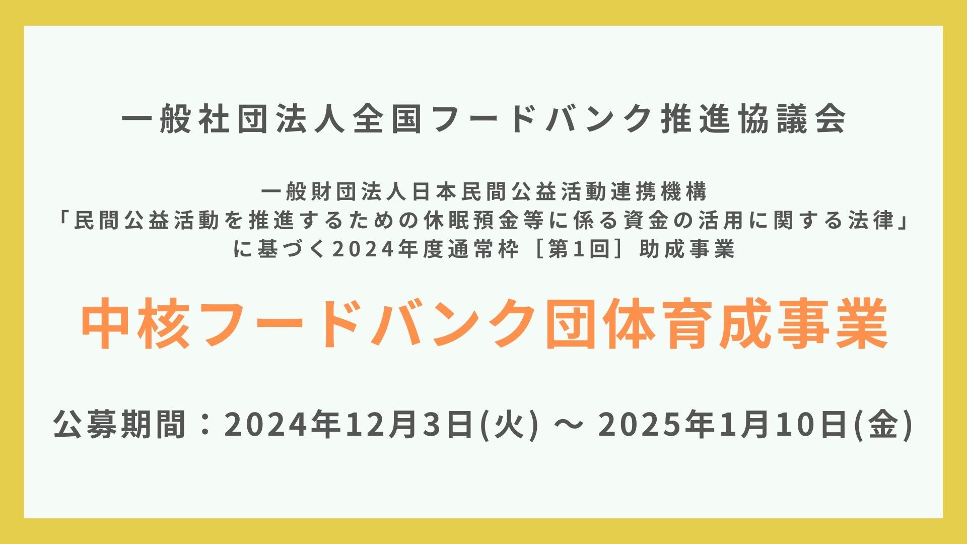 休眠預金活用事業【2024年度通常枠】「中核フードバンク団体育成事業」の公募のお知らせ