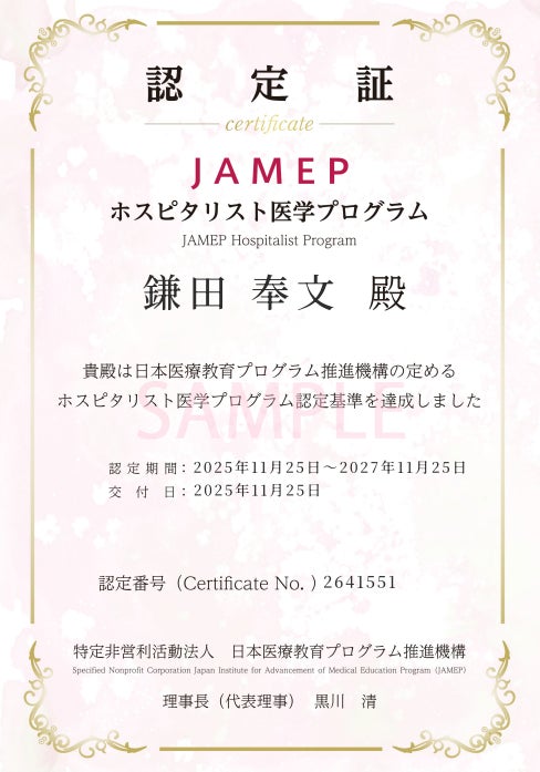 株式会社ケアネット(本社:東京都千代⽥区、代表取締役社⻑:藤井勝博、URL:https://carenet.co.jp/、以下「ケアネット」)は、特定非営利活動法人 日本医療教育プログラム推進機構(所在地:東京都品川区、理事長:黒川清、URL:https://jamep.or.jp/、以下「JAMEP」)と共同で、病棟診療(hospital medicine)に必要な総合的能力を客観的に評価する「ホスピタリスト医学プログラム」第1回認定試験の申し込み受付を2025年12月1日より開始したことをお知らせします。