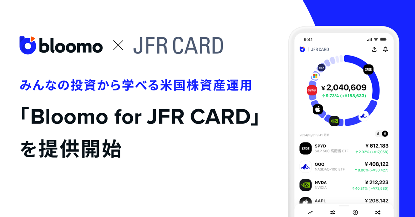 JFRカード株式会社が案内するBloomoは、JFRカード株式会社と異なる法人であるブルーモ証券株式会社が提供する商品およびサービスです。JFRカード株式会社が提供するサービスではありません。