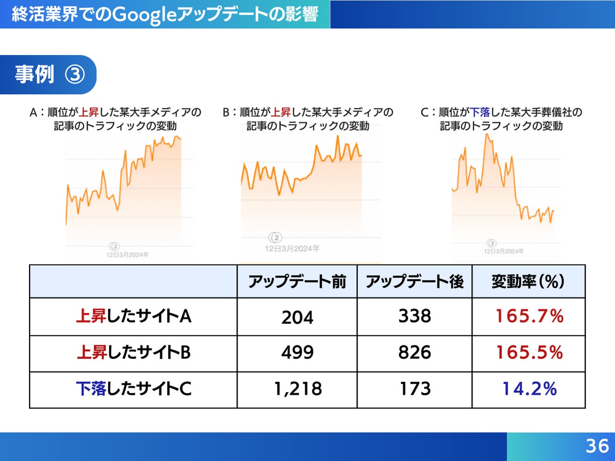2024年4月に完了したGoogleアップデートにより、終活業界の各サイトのトラフィックに変動が起きています。今回のアップデートでは、以下の内容を反映しているサイトがポジティブな影響を受けています。