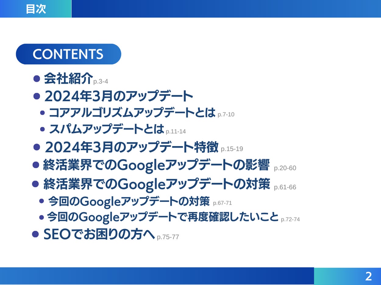 今回のGoogleアップデート分析レポートのトピックは下記の通りです。