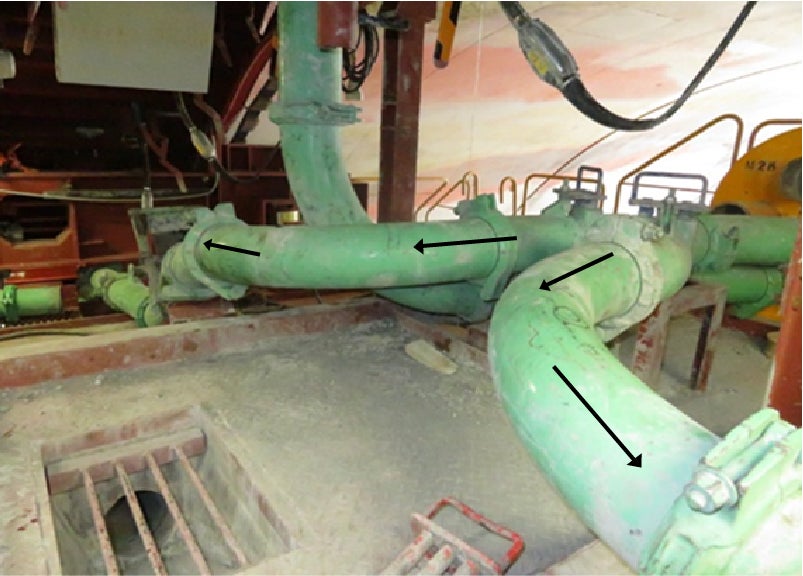 ※1:1系統の打設ルートをY字配管によりセントル(移動式型枠)の左右に分岐させる「左右の同時打設」(写真-1)と、コンクリートをセントル内の打設口の高さに到達するまで流入した後も、配管を切り替えずそのまま打設空間の上方へ圧入する「圧入方式を併用する打設」により、配管の切り替え作業の回数を削減し、同作業にともなう打設中断時間を短縮します。