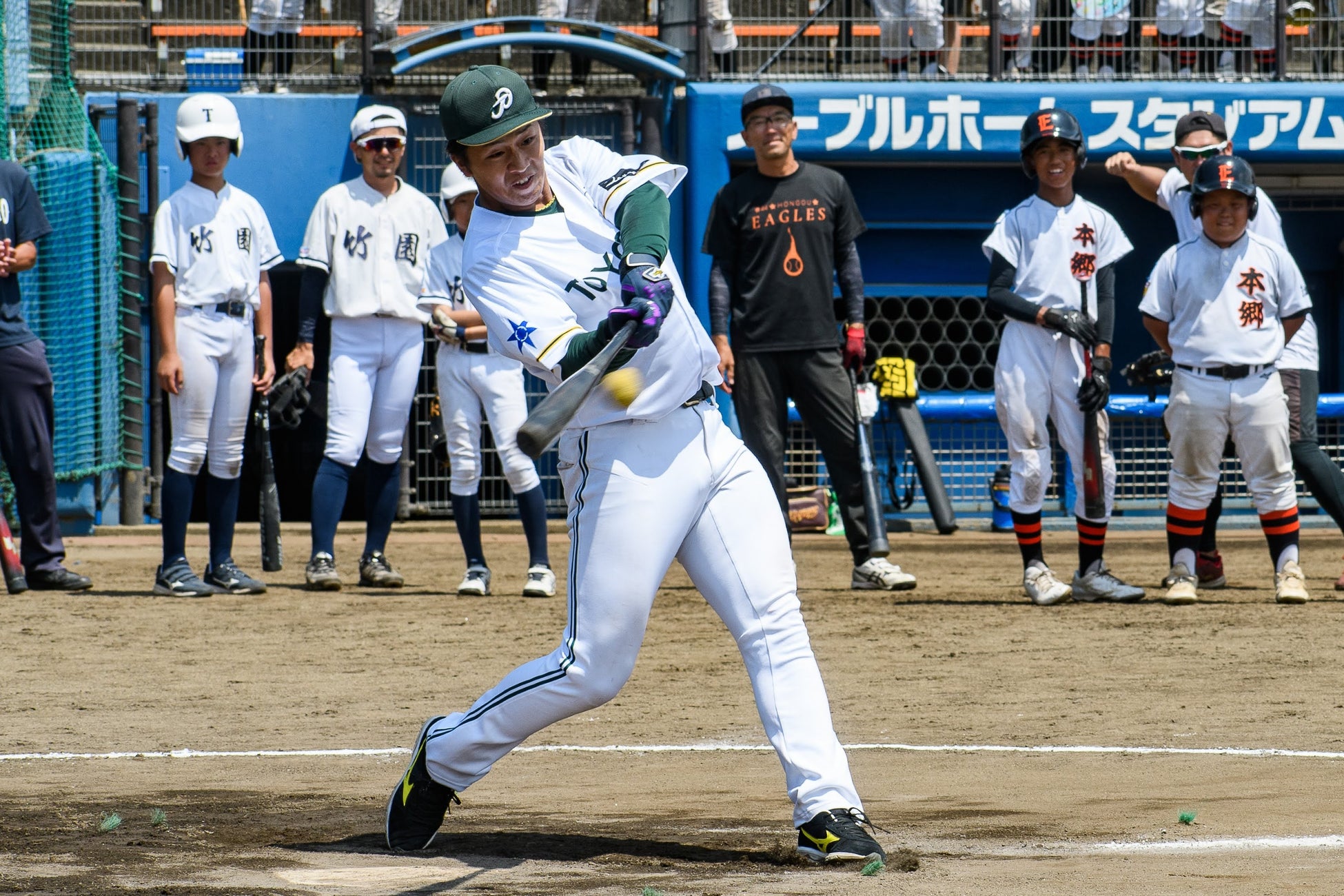 ・チーム代表選手2名および大人1名が参加するホームラン競争の実施と、参加チーム全員応援合戦