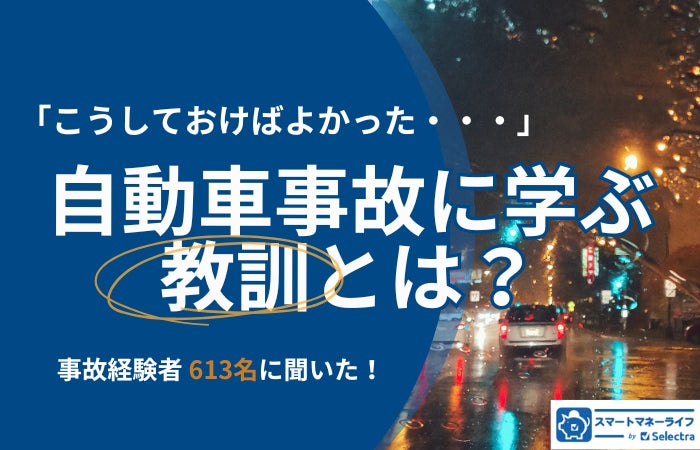 セレクトラ・ジャパン株式会社(東京都渋谷区、代表取締役:グザビエ・ピノン)の運営するお金に関する情報を提供するメディア「スマートマネーライフ(https://smart-moneylife.jp)」は、2025年4月、自動車事故の経験がある全国の男女613名を対象に「自動車事故で悔しかったこと」に関するアンケートを実施しました。また、その中で保険に関する後悔について回答した100名を対象に、「事故と保険」に関する追加調査も行っています。