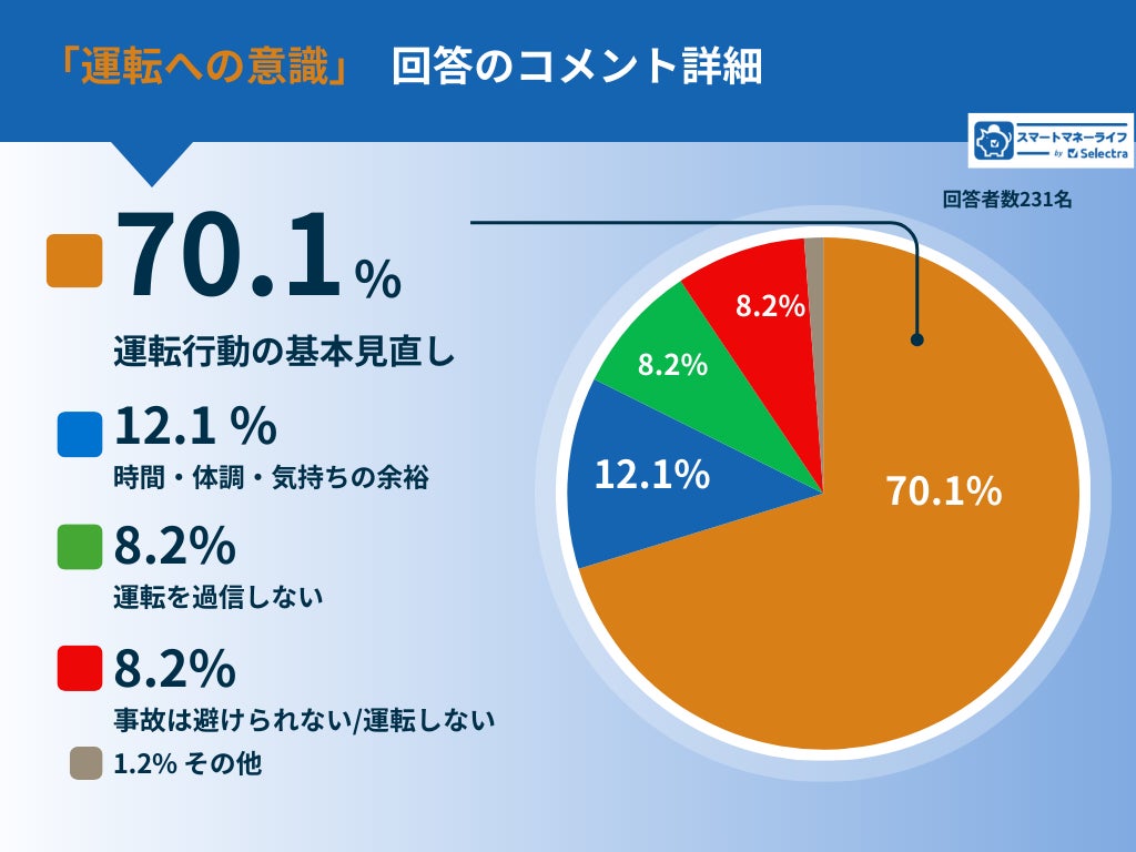 「慎重に運転すべきだった」「睡眠をしっかり取っておけばよかった」「自信を持ちすぎていた」など、基本的な運転行動の見直しを求める声が圧倒的でした。油断や疲れによる判断ミスへの反省が目立ちました。
