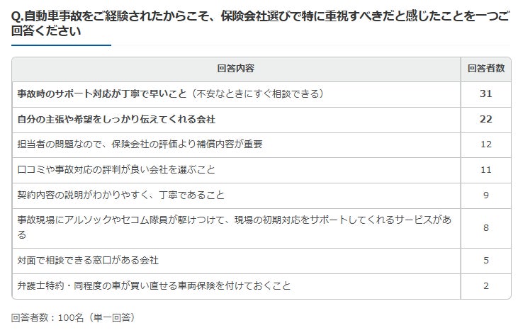 保険会社選びでは「事故時のサポート対応が丁寧で早いこと」が重視されている