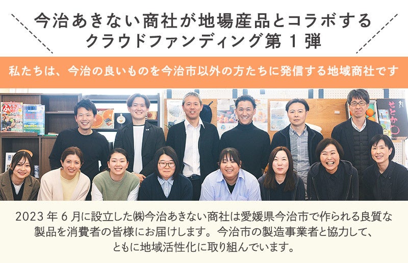 【今治発!】今治市の魅力を全国に発信する地域商社「今治あきない商社」が地元企業とタッグを組んで手がけるクラウドファンディング第1弾!