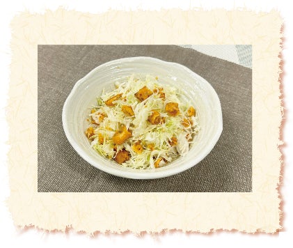 千切りしたキャベツに当商品を混ぜるだけで完成するうまいか入りサラダです。