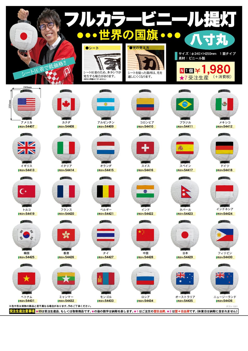 新商品発表:世界の国旗デザインのフルカラービニール提灯