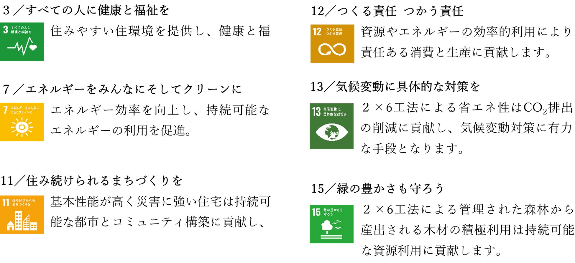 本リリースの3つの断熱グレード新設は、SDGsの目標のうち、次の6項目に貢献しています。