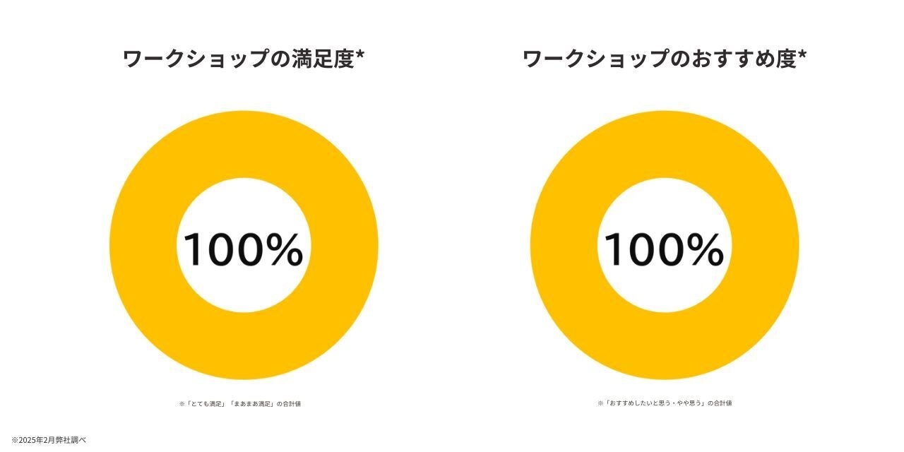 イベント終了後のアンケートでは、「満足度*」が100%であっただけでなく、「おすすめ度*」も100%を記録しました。