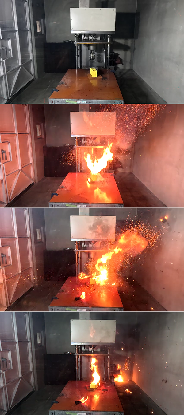 本試験では、バッテリーパックまたはシステム内の1つのセル(トリガーセル)を意図的に熱暴走(サーマルランナウェイ)させ、隣接するセルやモジュールへの熱伝播を評価します。