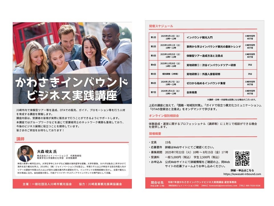 【川崎市観光協会】川崎市内で体験型ツアー等を造成、OTAでの販売、ガイド、プロモーション等を行う人材を育成する講座を開催します。
