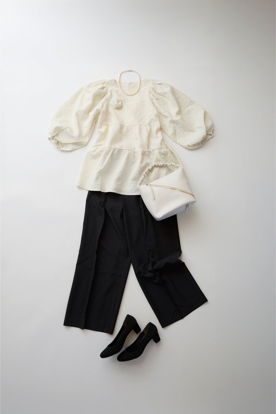 明るい未来を感じさせるホワイト系のカラーをベースにしたスタイルは、始まりの季節にふさわしい軽やかな印象。
