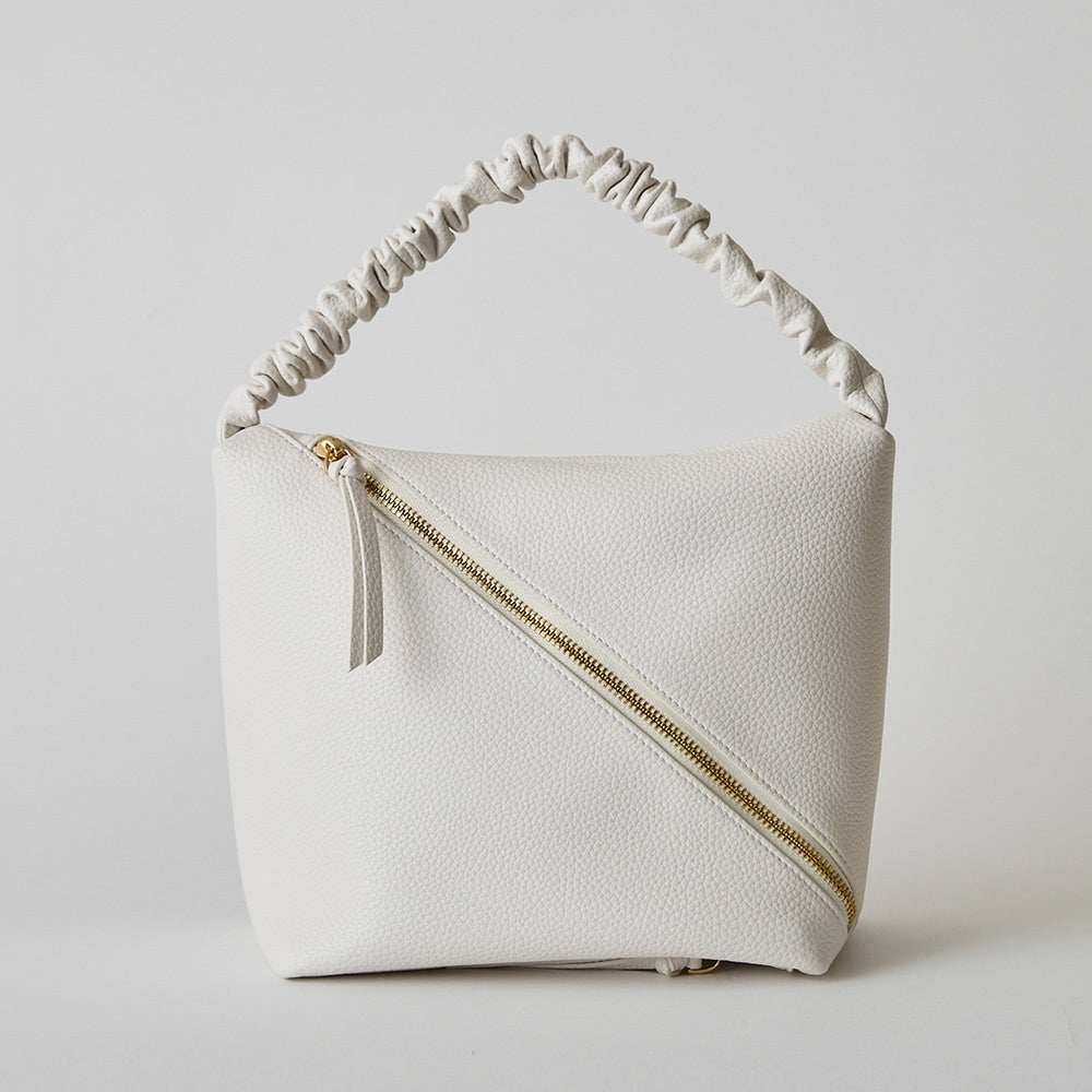新作として登場したワンショルダーバッグ。クシュっとしたハンドルデザインがワンポイントとなり、セレモニースタイルに程よい華やかさをプラスします。