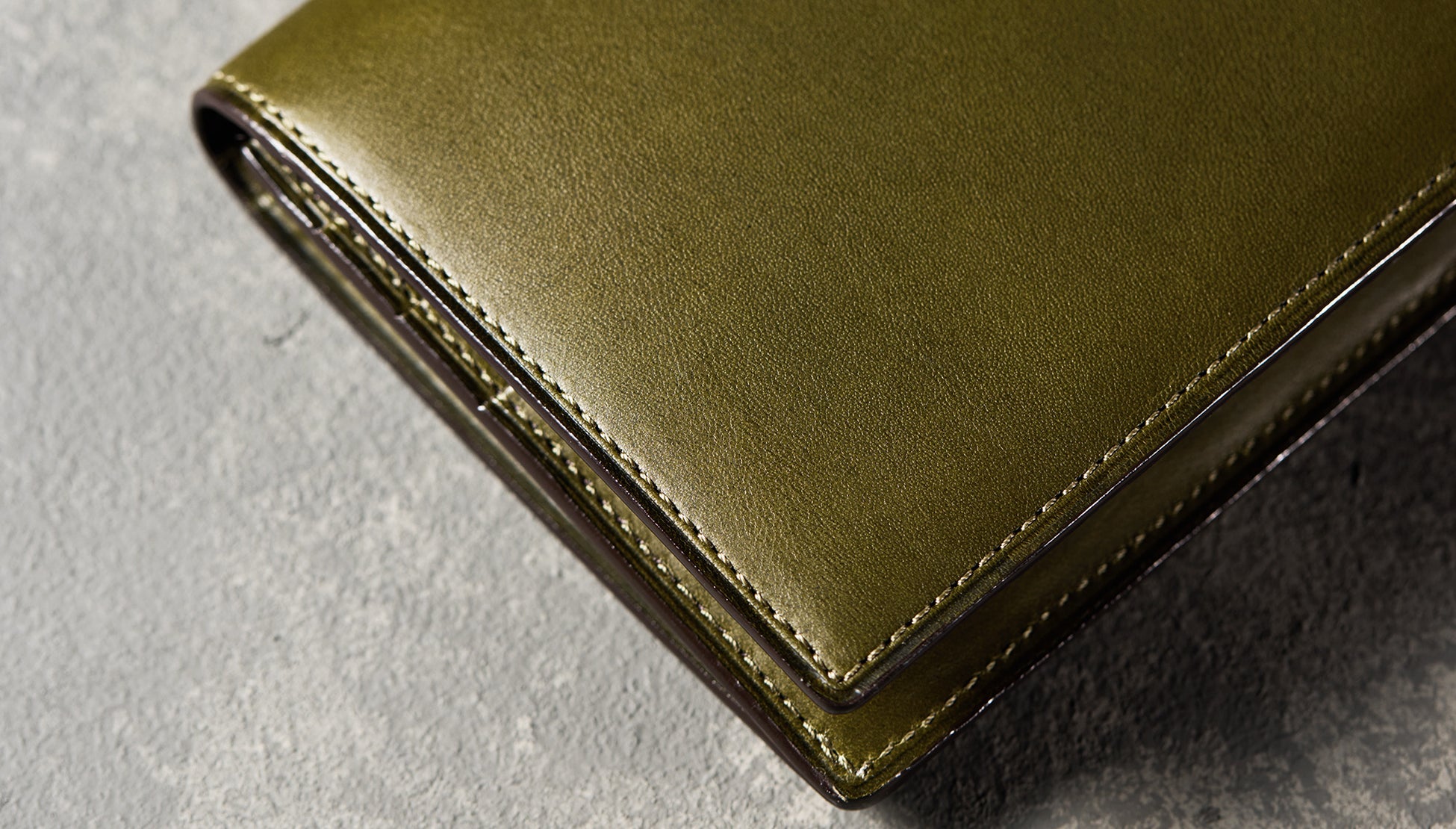 表裏にイタリア産最高級皮革のミネルバリスシオレザーを使用した財布小物シリーズ。