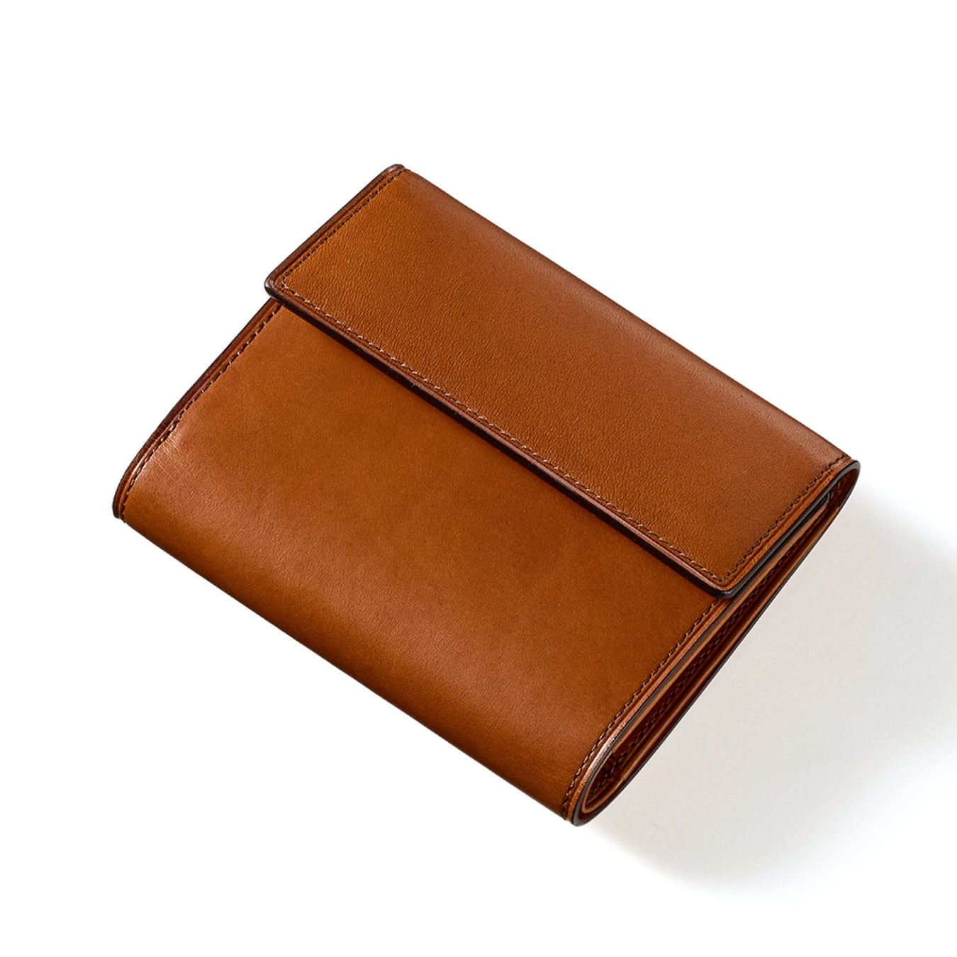 クラシカルな3つ折り財布。お札、小銭、カードをコンパクトに収納できる機能を持ち、手帳の様なホールド感がお洒落な財布です。