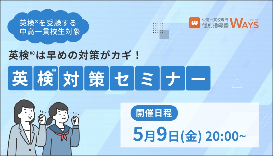 【無料オンラインセミナー】英検®︎は早めの対策がカギ!中高一貫校生向け「英検®︎対策セミナー」を開催します!(主催:中高一貫校専門 個別指導塾WAYS)