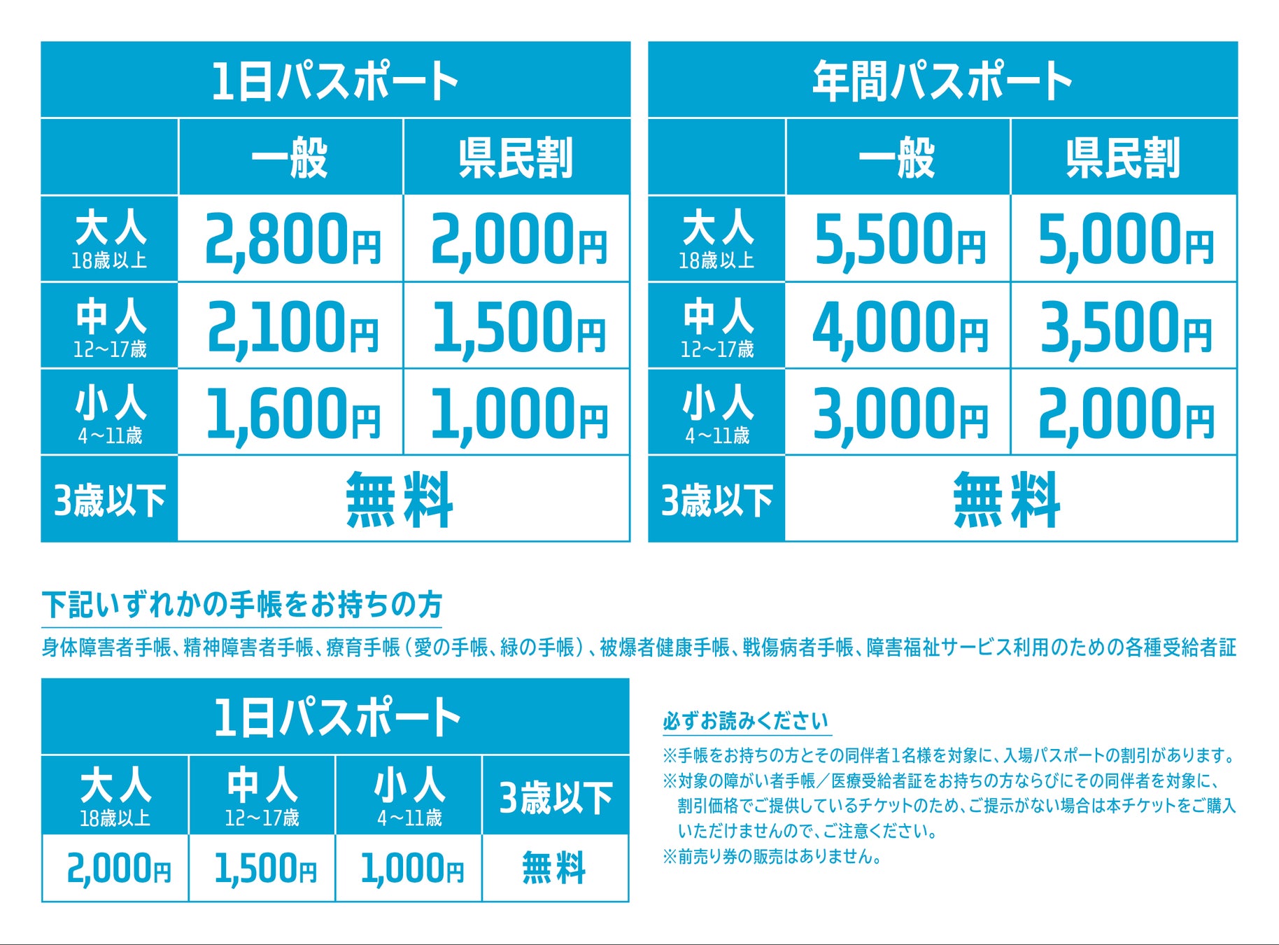 ※税込価格。3歳以下入場無料。