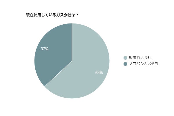 「現在使用しているガス会社は?」という質問に対して、63%が「都市ガス」と回答しました。