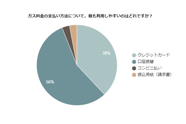 ガス料金の支払い方法について、最も利用しやすいと回答数が多かったのは「口座振替」、次いで「クレジットカード」でした。